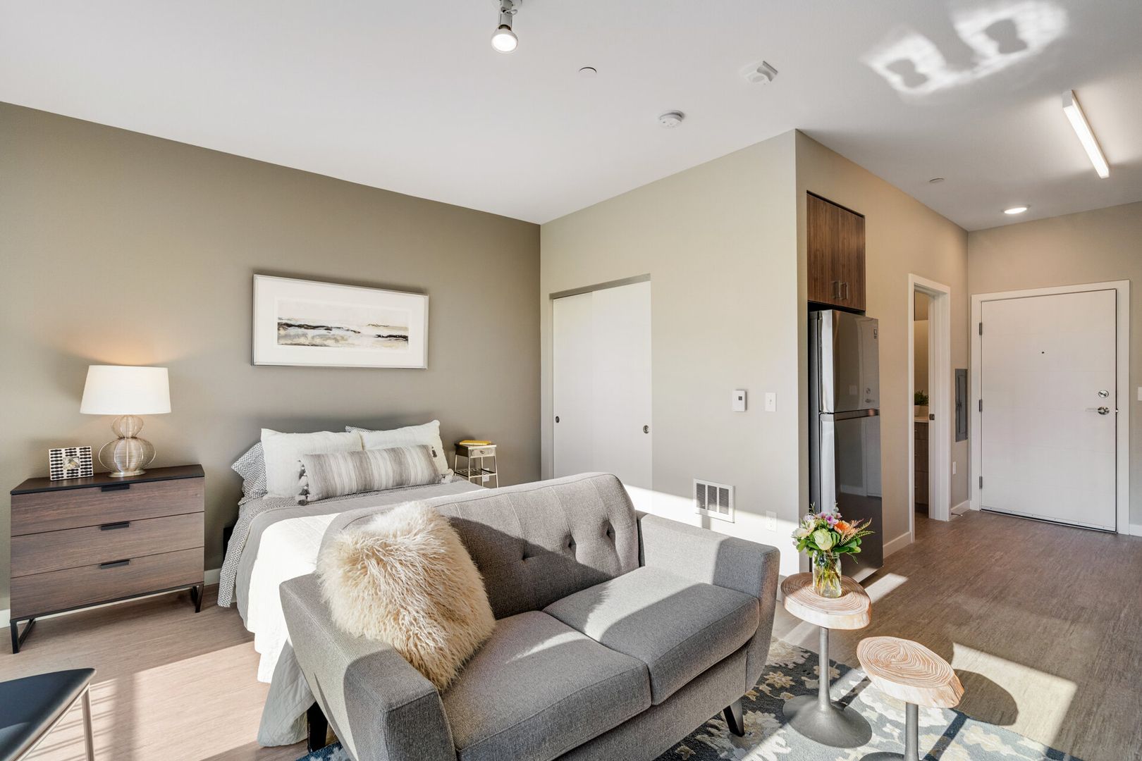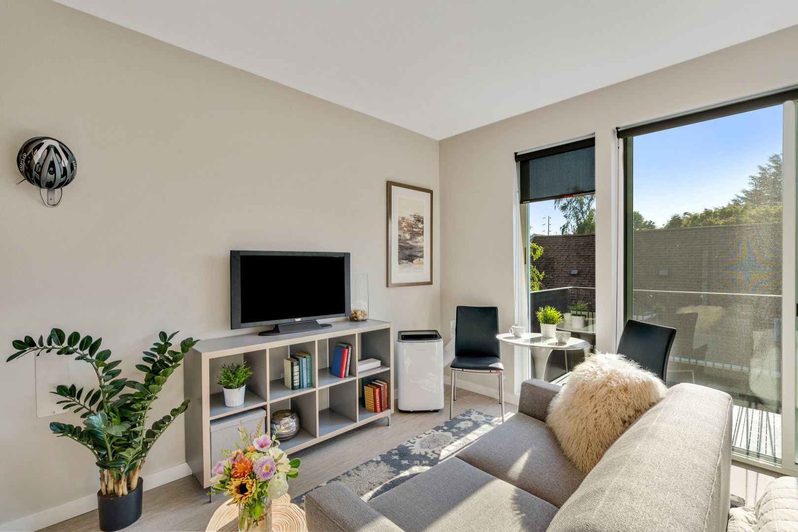 This One Bedroom apartment in wonderful Sellwood location has a modern edge with all the newest design trends. Beautiful quartz countertops, tall cabinetry for extra storage, stainless appliances, full-size washer & dryer, side panel doors and tall ceilings with floor to ceiling windows let in the light!! This apartment home has an attached private balcony to enjoy the outdoors!